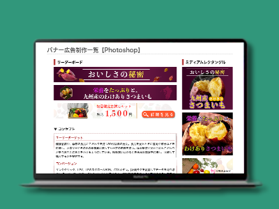 広告バナー制作や写真の合成、切り抜きなどwebサイト制作で必要な基本的スキルがあります。